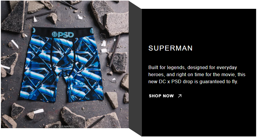 Built for legends, designed for everydayheroes, and right on time for the movie,this new DC x PSD drop is guaranteedto fly.