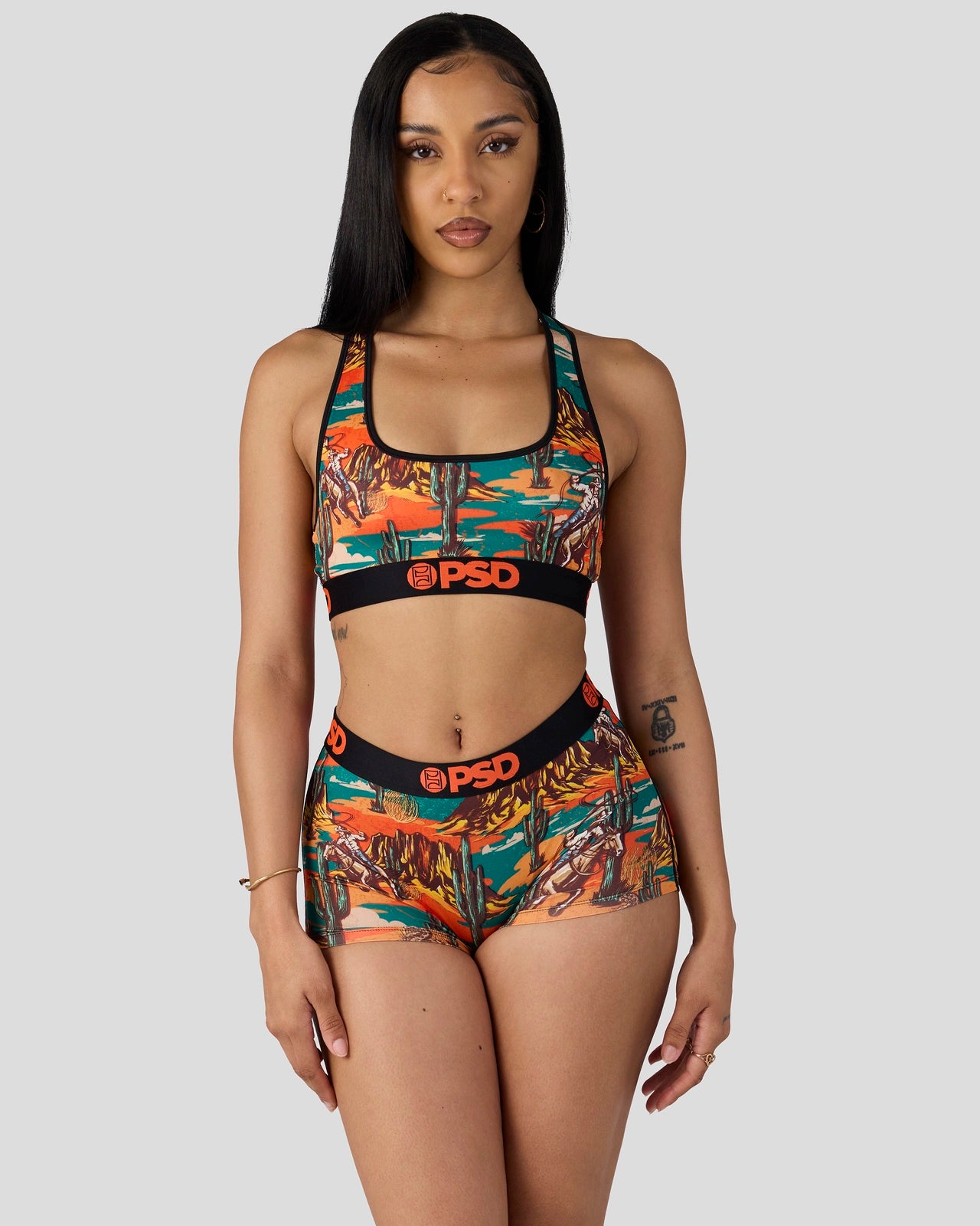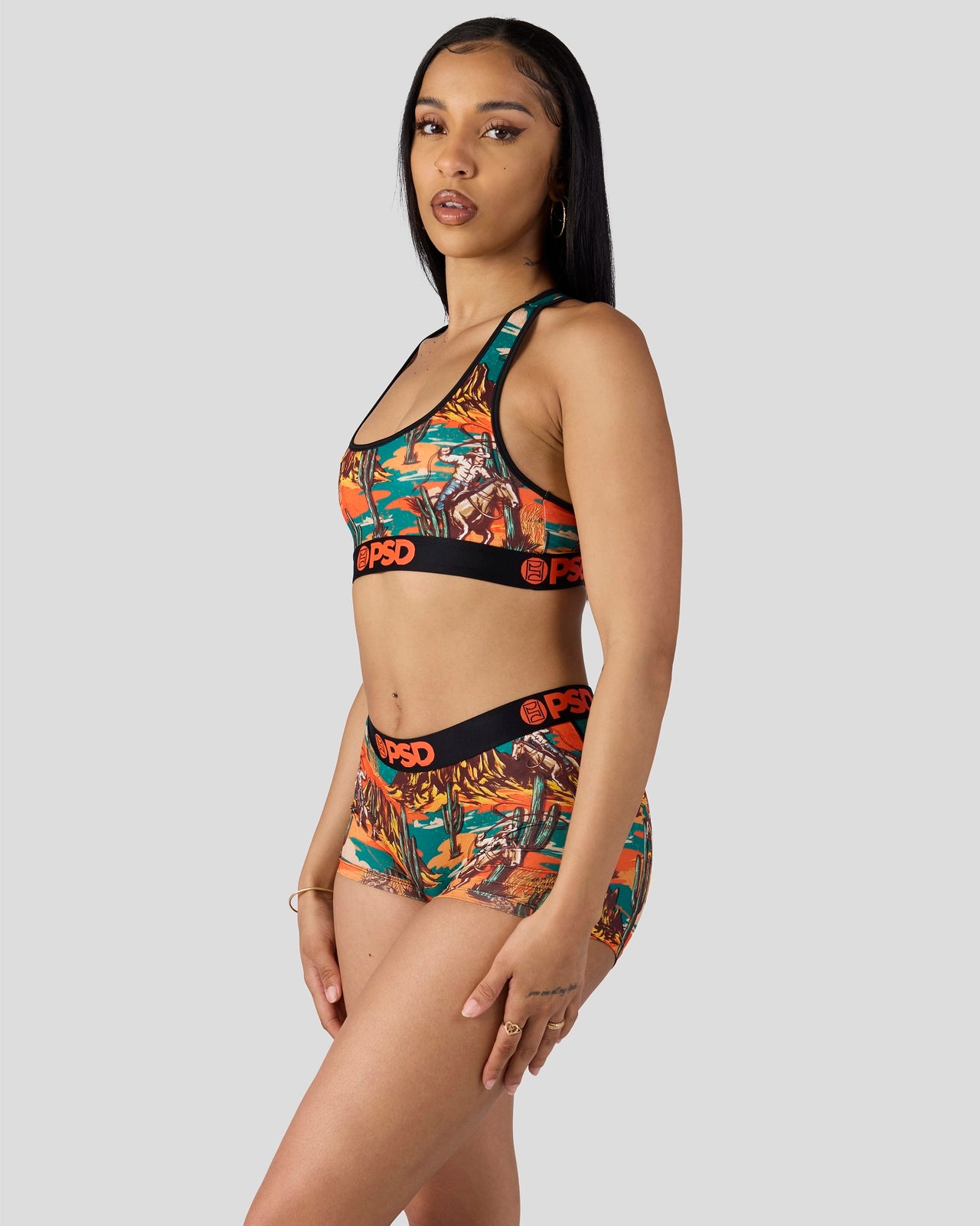 Find your giddy up in this new Western-inspired bra. The Deserted Boy Short is made from a silky poly blend with a comfortable full coverage. keep-you-in fit. The PSD boy shorts are perfect for everyday wear and working out.