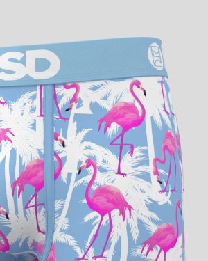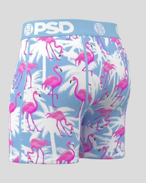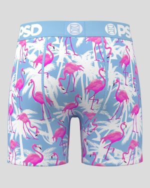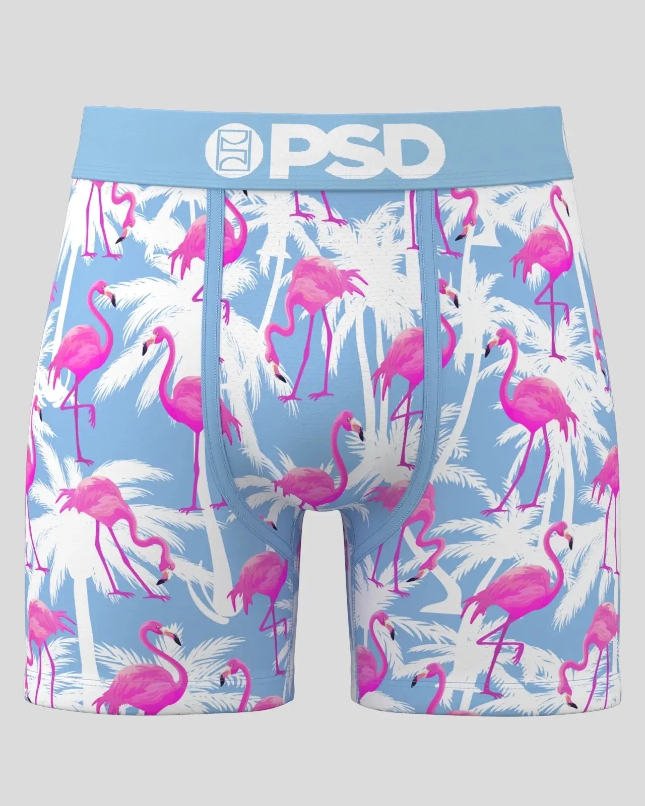 Featuring palm trees and bright pink flamingos set to a blue background. this new pair is like wearing a vacation. The Flamingo Palm Sky briefs include our ultra-comfortable Signature WaistBand. a breathable MicroMesh pouch. and four-way stretch. The PSD 5 Mid Length Briefs won’t roll or ride and were built for everything. from everyday wear to your toughest workouts.