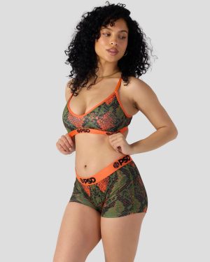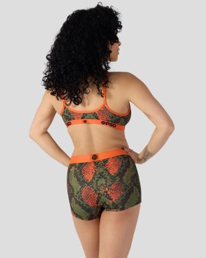 Slither your way into this new snakeskin-inspired look. Made of soft and silky fabric. the Green Snake V-Neck Bralette is light and breathable so you barely feel like it’s there. It gives you full coverage and medium support when you need to wear a bra but don’t want to.
