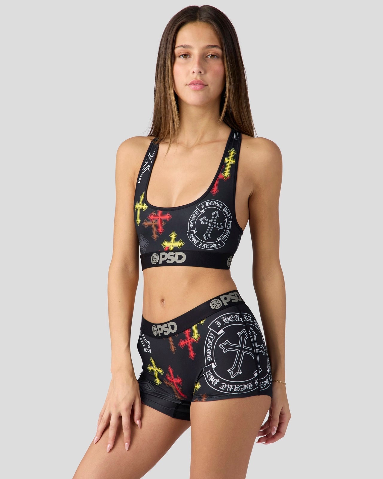The Heart PSD Sports Bra is made from a silky poly blend and is breathable yet slightly compressive. bringing you the comfort and support you need for everything you get into.