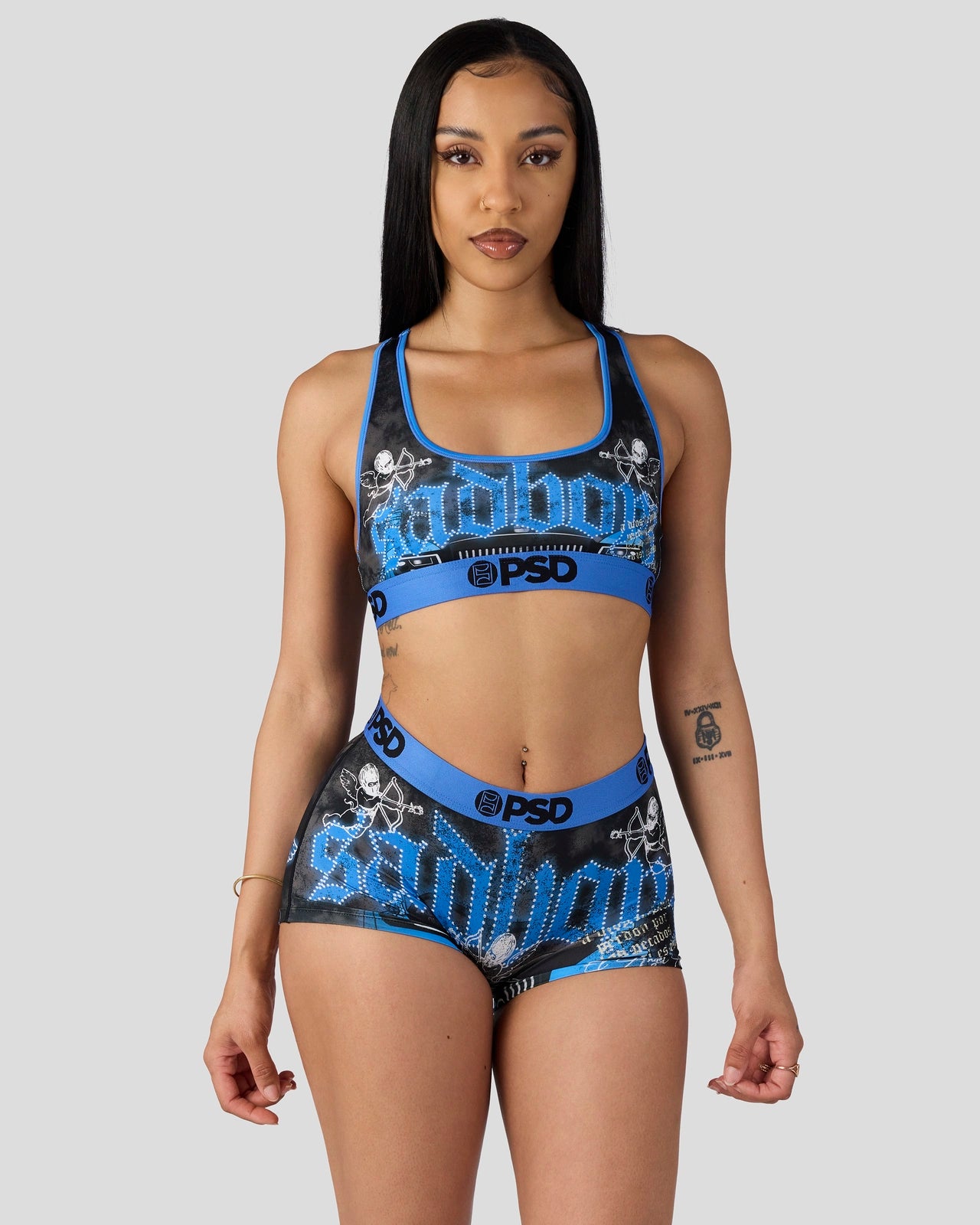 From Sad Boyz x PSD. the El Azul Angel Boy Short is made from a silky poly blend with a comfortable full coverage. keep-you-in fit. The PSD boy shorts are perfect for everyday wear and working out.