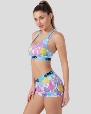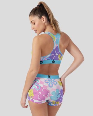 SpongeBob. Patrick. flowers. and checkers all in bright neon colors combine to create a new style you can’t miss. The SpongeBob SquarePants Neon Check Sports Bra is made from a silky poly blend and is breathable yet slightly compressive. bringing you the comfort and support you need for everything you get into.