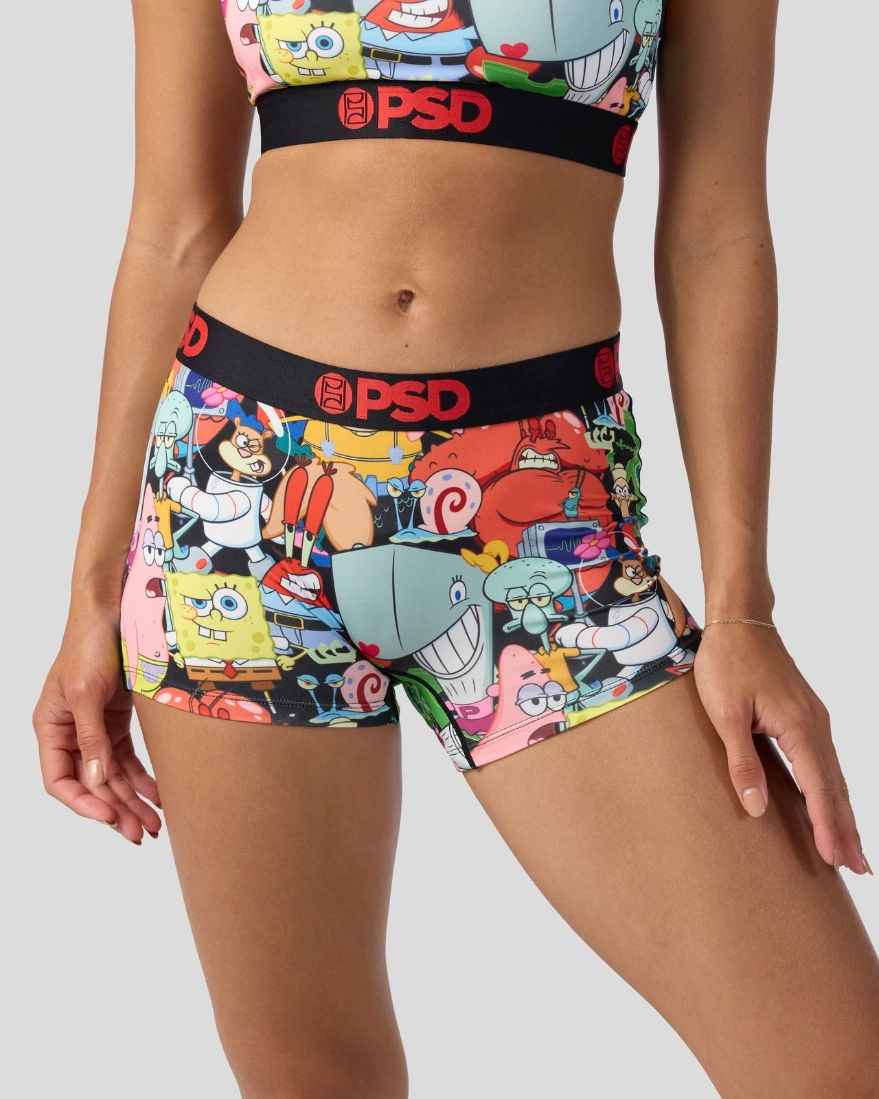 The Squad Boy Short from SpongeBob SquarePants x PSD is made from a silky poly blend with a comfortable full coverage. keep-you-in fit. The PSD boy shorts are perfect for everyday wear and working out.